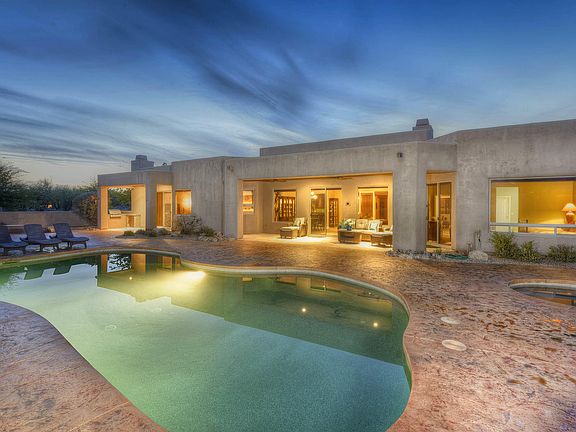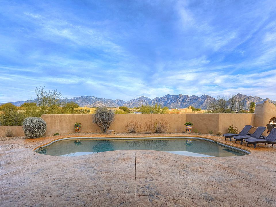 Located in the sought after community of Reflection Ridge, this spectacular home offers single-level living, a split bedroom floorplan, elegant finishes, and expansive mountain views! Outstanding outdoor space with pool/spa, two patios, built-in BBQ, custom fireplace and seating areas. Gorgeous picture windows, coved ceilings in entryway/great room, wet bar, built-in shelving, two fireplaces, and ample room for living/dining. Well-appointed eat-in kitchen featuring stainless steel wall ovens and large island with gas range. Generously sized owner's suite with private entry to backyard and relaxing ensuite bath featuring a garden tub and large walk-in shower with custom tilework and stone floor. Oversized 3-car garage with separate 10 x 10 storage room offers additional storage/workspace.