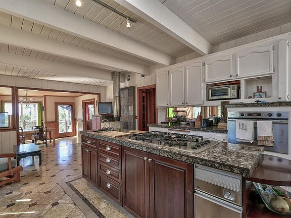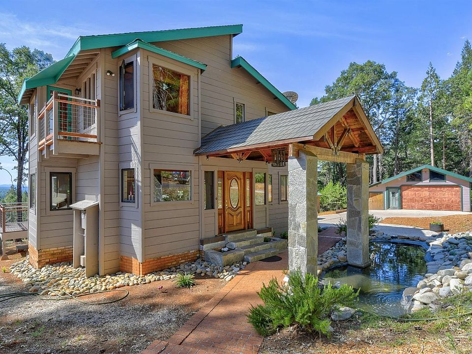 Experience the astounding views from your gated retreat-style refuge situated on a very private forested parcel with long range snowcapped views and gated entry. Architectural interest is created with both cathedral ceilings and gorgeous redwood interior walls and ceilings. A blend of contemporary and rustic accents blend satisfyingly to create a one of a kind atmosphere. Additional driveway and building area already prepared to add a second unit.