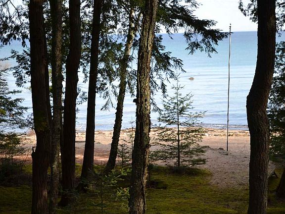 A 5 bedroom family home on a wooded lot on 141' of sandy Lake Michigan frontage. Huge sunsets, evening strolls on the beach, stone-skipping and driftwood collecting - all winding up back home in this comfortable year-round waterfront house. Main floor master and open living, kitchen and dining areas, a generous laundry room and a cozy fireplace flanked by dancing blue views, with a separate den/library off the kitchen. Lower level has a second kitchen, a spacious family/rec room, and plenty of sleep space.