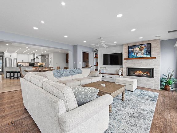 Welcome to your dream lakefront living at Lake Wawasee's exclusive Spink community! This completely renovated 3 bedroom, 2 bath penthouse condo offers the epitome of turn-key luxury! Nestled within 12 acres of meticulously maintained grounds, this gated community boasts unrivaled amenities including 2-car attached garages, elevators for access, boat slips, personal watercraft spaces, a heated pool, and sports enthusiasts' delights like tennis, pickleball, and basketball courts! Step inside to discover an inviting open floor plan featuring two cozy fireplaces and a tastefully designed kitchen equipped with brand new cabinetry, sleek quartz countertops, under mount granite sink, & stainless steel appliances. Seamlessly integrated, the kitchen transitions into a delightful dining area & a spacious living room offering panoramic lake views through 4 sets of Andersen sliding doors, complete with sun filtering blinds. The large primary suite is a true retreat showcasing a sizable walk-in closet with tamers & a luxurious en-suite with new dual vanities, hardware, & a generously sized ceramic tiled walk-in shower. Two additional bedrooms are located at the rear of the condo and have wonderful pool views. Other upgrades include: cabinetry & lighting throughout, in-ceiling speaker system, luxury vinyl plank flooring, tankless water heater, Wifi controlled HVAC system + more! Experience lakeside serenity in this exceptional condo - your gateway to a life of pure luxury at the Gem of Lake Wawasee!