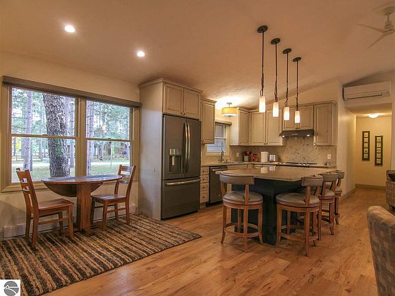What a rare opportunity to find such a comfortable and complete home in Crystal's popular Club neighborhood within 400' of the slopes and Kinlochen Lodge! This turn-key home has new appliances, new kitchen cabinets, granite countertops & quality finishes throughout. Features include cedar siding, a covered entry, an open concept living/dining/kitchen area with vaulted ceilings, stone fireplace, granite-top island, dry bar, easy-care laminate flooring, 4 bedrooms and 2 bathrooms including a master suite, an attached 24x16 garage, plus new roof, baseboard heat and ductless AC. In every season you'll enjoy Betsie Valley #10 views along with filtered views toward the Buck lift and slopes in winter, a screened porch, large deck, the shade of the tall pines and close proximity to the pools, restaurants, and Crystal Spa. Walkable to everything Crystal Mountain has to offer and well-suited for full-time living or as a second-home. Short-term rentals are allowed for owners interested in offsetting ownership costs. This is a property you need to see! Offered with a complimentary one-year FOUR SEASONS CLUB family membership to Crystal Mountain.
