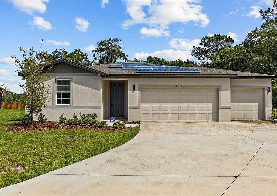$$$ This is HUGE - Price Reduction $$$ - TURN-KEY Property - FULLY FURNISHED - PACKED with VALUE! Welcome to 12277 Spring Hill Drive. Built in 2021 by Meritage Homes, this modern and energy efficient single-story residence offers 4 bedrooms, 2 bathrooms, a 3-car garage, and an oversized .55 acre lot. With NO HOA, NO CDD, NO flood zone, and SOLAR to be PAID-OFF by SELLER at Closing - this home is a rare combination of freedom, convenience, and long-term savings. Inside, the open-concept layout is designed for modern living with solid stone countertops, stainless steel appliances, a large kitchen island, and spacious dining and living areas perfect for hosting or relaxing. The split-bedroom floor plan includes a private primary suite with walk-in closet and en-suite bath, plus three additional bedrooms offering flexibility for guests, office space, or multi-use needs. This home is being sold fully furnished, making it a true turn-key option for primary residents, seasonal owners, or investors seeking an easy short-term rental setup. Outside, the extended driveway, 3-car garage, and large backyard provide ample space for parking, storage, play, or future outdoor enhancements. With solar panels paid in full, enjoy reduced monthly electric costs and long-term energy efficiency. Located close to shopping, dining, medical facilities, parks, and major commuter routes with an easy drive to Tampa, the location offers both everyday convenience and lifestyle appeal. Whether you're looking to expand your investment portfolio or settle into a beautifully maintained home with exceptional value, this property checks all the boxes. Move-in ready, income-capable, and energy-efficient — schedule your private showing today.