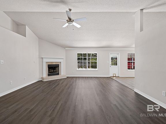 POOL home in Foley’s Plantation at Magnolia River neighborhood. This location puts you minutes to the heart of downtown Foley where you can enjoy many of the popular local restaurants or make a visit to Stacey’s Old Tyme Soda Fountain. It is also just a short trip to the white sand beaches. This brick home provides a split floor plan with a freshly painted interior and brand-new luxury vinyl flooring. The open and spacious living room features vaulted ceilings and a wood burning fireplace, there is a formal dining room, and a versatile flex space. The flex space could be used as an office for your work from home needs, or an additional sitting area. The kitchen is equipped with granite countertops, subway tile backsplash, stainless appliances, and freshly painted cabinets. The master suite is generously sized and offers 2 walk-in closets, and the master bath features double vanities, a garden tub, and separate shower. The backyard is sure to be your favorite spot! Step out back and relax by the pool under the screened lanai or entertain around the table under the covered patio. The yard is completely fenced, with gates on both sides, so you will have plenty of privacy. There is also a large outbuilding with a roll up door and power. Other features include gutters and a side entry double garage.