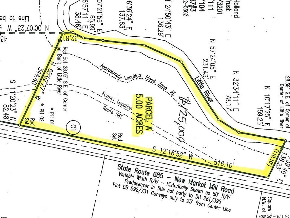 847 feet of frontage on the Little River and 845 feet of road frontage on New Market Mill Road! Five acres located in the historic New Market Mill neighborhood with a beautiful high promontory overlooking the Little River. Situate your mountain-style home on the high promontory facing west to the gorgeous sunsets. Bring your builder! No Restrictions! Four Bedroom Conventional Septic Tank Drain Field System. Located 8 miles from restaurants, shops, and conveniences in the Town of Ashland.