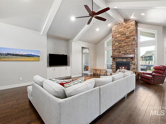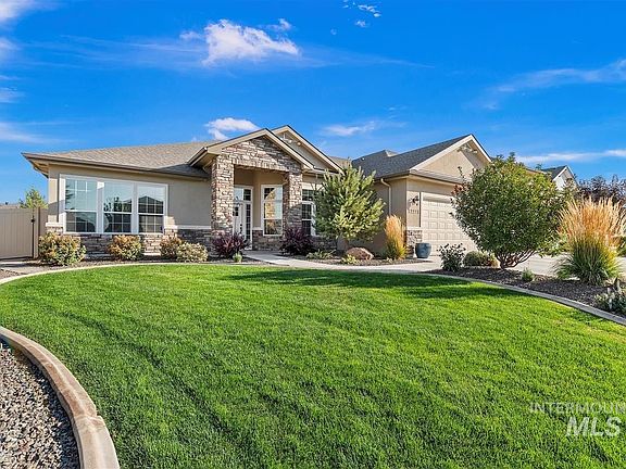 Gorgeous SINGLE level home with a RV garage that includes epoxy floors, a shop area, built-in storage and a separate space upstairs that is heated/cooled - making it perfect for an office, craft room and/or gym. Inside you'll find a beautifully appointed kitchen with dual ovens, gas range cooktop, granite countertops, large walk-in pantry, breakfast bar and plenty of room to entertain. The Owner's suite is very spacious and has a luxurious bathroom with a large walk-in closet, walk-in shower and soaker tub. Other amenities include 3 bedrooms PLUS an office, beautiful gas fireplace, vaulted ceilings, a North facing, fully fenced backyard with a large covered patio, built-in firepit, and a .27 acre lot that doesn't share a fence with a backyard neighbor. WELCOME HOME.