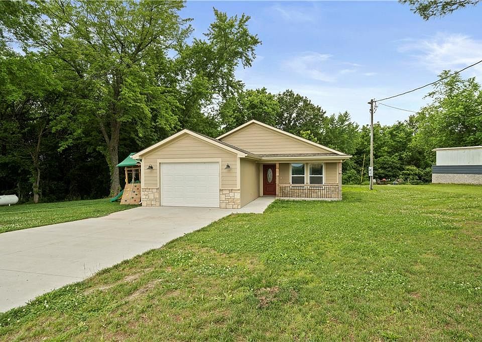 Just minutes outside of town, this open-concept 3 bed, 2 bath house is under two years old and offers 1,265 sq ft of modern living space that still feels as fresh as new construction. The primary bedroom offers a double vanity, walk-in closet, and private door to the back of the home and patio. Enjoy the backdrop of the woods and a creek right behind the property, and picturesque farmland across the road. The best blend of county charm and convenience of town.