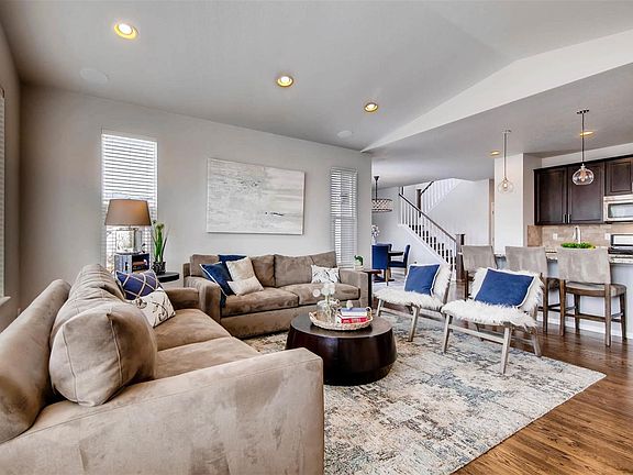 Beautiful, like-new 3br/2.5ba Meritage home sits on a cul-de-sac and backs to open space and trails. Kitchen with granite, huge island, SS Whirlpool appliances, bar area with wine cooler, contemporary pendant and chandelier lighting. Richly stained hardwoods and wood cabinetry, glass rock gas fireplace and spacious office add to main floor charm. Master suite with attached bath and walk-in closet, plus 2 beds and full bath. Gorgeous and affordable, this Parker beauty is not to be missed!