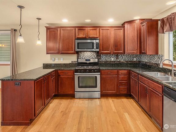 Rare stand-alone townhome in Lynnwood's Martha Lake community. Three large upstairs bedrooms, including Primary En-Suite and laundry. The expansive great room floorplan on the main level includes gas fireplace, dining area, living room and kitchen. The granite slab counter tops, tile backsplash, stainless appliances and gas cooktop sit beautifully in this entertainment space and next to a private deck. Lower level has large two-car garage and additional office/bonus room. Only home in the community with its own two-car driveway in addition to garage parking space. Exceptional location close to freeway access and Martha Lake! Edmonds Schools.