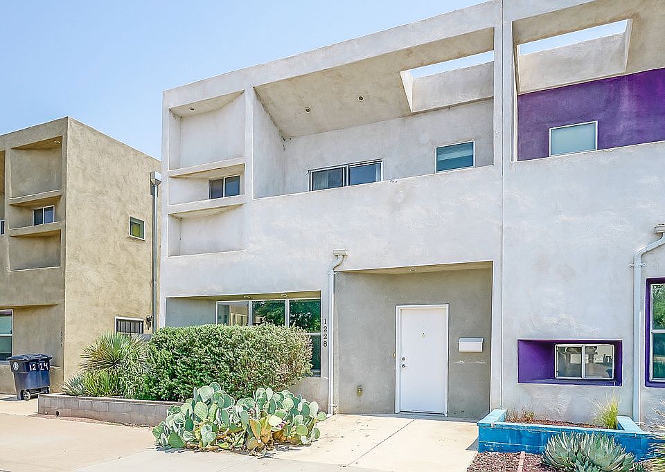 Welcome to Barelas Townhomes! Sophisticated urban retreat built in 2006 and designed by Kaven Architecture. Townhouse living with a modern twist – stained concrete floors, skylit centerpiece staircase and energy saving touches. Main level boasts huge airy layout and open gourmet kitchen. Upstairs is a retreat – each bedroom has its own private terrace, private bath and ample closets! Washer and dryer are included! Unique experience just blocks to Downtown, Railyard Market, hiking trails, transit and cultural centers. Proven rental history, AirBnB and VRBO potential or move right in!