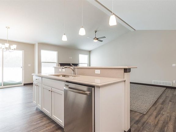 Best Value on New Construction in this price range; NE location. Upgraded white cabinetry; hand scraped LVP floors and Amana stainless steel appliances with smooth top stove. Deck off of dining room. Hard surfaced Quartz counter tops throughout; gas direct vent fireplace in Great Room area with vaulted ceilings. Drop zone located by garage entry way. His and Her sinks in master bath with convenient first floor laundry room. Lower level is ready for your 4th bedroom, bath and rec room with daylight windows. Home was built to Energy Start Standards. Work with an experienced builder, over 60 years in the business; 12 - 5 - 10 Platinum Warranty for a peace of mind.