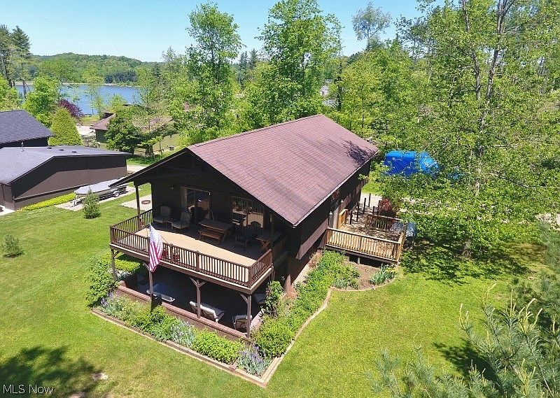 This fabulous Atwood Lake home, in the charming Atwood Pines community, offers 1853 square feet of living space & is located on a stunning beautifully landscaped lot & just an easy 1 minute walk to the lake. This well maintained & updated lake home features partial lake views with incredible sprawling outside living space for family enjoyment or entertaining. Much more extensive lake views seasonally from the deck, kitchen & Master Bedroom. The main floor features an open format living area with a spacious living room featuring vaulted ceilings & a stone gas fireplace, fully applianced kitchen with breakfast bar & dining room. This space provides wonderful natural lighting, luxury vinyl plank flooring & 2 patio doors leading to the upper level partially covered lake view composite deck. A massive 23x14 master bedroom with walk-in closet & Heat & Glo fireplace, 2 additional bedrooms & a full bath with oversized shower complete the main floor. A private 24 foot floating dock provides a picturesque setting for your nautical toys & provides stunning sunsets without ever leaving your dock. However, you will want venture into the 1540 acres of Atwood Lake fun with your 24 foot Suncruiser pontoon boat with 25hp Johnson motor included with the home for immediate lake enjoyment. The lower level features a 24x12 family room that could be used as additional bedroom space if desired along with a convenient second full bath. Patio doors lead to a charming lower Nature Stone surfaced patio for additional outside space to enjoy & entertain. The remainder of this level provides a convenient access to a one car garage & a spacious workshop. Recent updates include new refrigerator, new dishwasher & garbage disposal, new A/C & hot water heater in 2021. MWCD 2024 annual lot lease is $1,966. Be sure to view the 3D virtual tour providing fabulous interior detail. Tremendous opportunity to turn your dream of a lake house into a reality! Call to schedule your personal showing today.