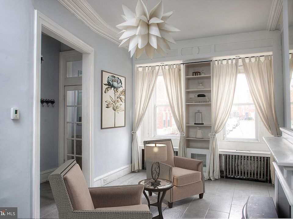 Charming 3-story Victorian style townhouse facing Hawthorne Park in the Bella Vista/Hawthorne neighborhood. It has 3 bedrooms, 3.5 baths, a home office, and a large roof deck. The rooms all have a grand scale with high ceilings and lots of windows. The first floor has a large living room with a gas stove fireplace, half bath and open floor plan dining room and kitchen. There is a lovely tree-lined brick patio off the kitchen with a separate trash and storage area. The second floor has two bedrooms and two full baths. The rear bedroom has two windows and a set of French doors overlooking the patio. The third floor has an en-suite primary bedroom, full bath, and a home office space. There is a large newly rebuilt roof deck off the rear of the third floor. The basement has a utility and storage room with a full-sized washer and dryer. The rear of the basement has a finished bonus room that can be used as an office, den, gym, or children’s playroom. Beautiful Hawthorne Park is across the street and the Italian Market is just a few blocks away. There are also grocery stores on South Street and Washington Avenue. There is ample street parking due to the park and lots of public transportation options. The home has a 96 Walk Score and an 89 Bike Score. There are several day care options within a few blocks and multiple gym options nearby. The local high school, Academy at Palumbo, is a block away.