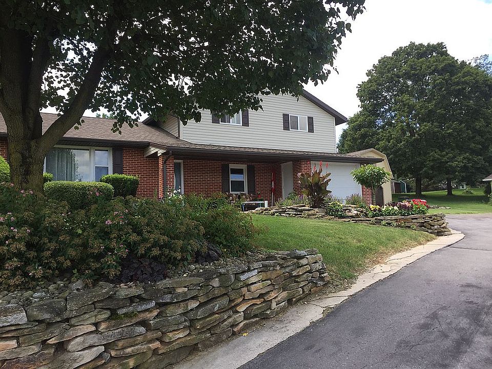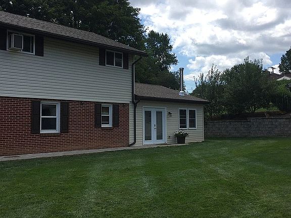 split level, family room, living room, finished basement, laundry on ground floor, 3 bedrooms on second floor, full baths on first and second floor. 20 x 26 finished seasonal room with cathedral ceiling; the sliding door opens to 20 x 20 stone-paver patio on one side and French doors open to yard on other. Large two story detached garage with 2 workshops on ground level. Quite neighborhood, just 15 minutes from State College.