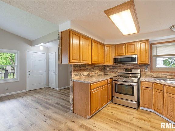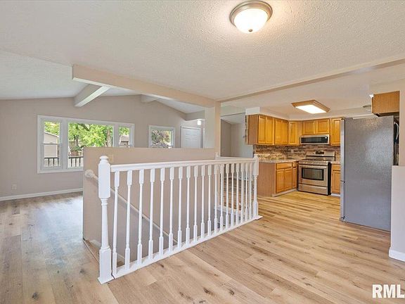 Welcome to your dream ranch-style home! This charming property features a spacious finished basement complete with a bedroom with egress window, a large entertainment room, and a stylish bathroom with tile flooring. Upstairs, the modern kitchen is equipped with stainless steel appliances, including a dishwasher, and showcases a beautiful stone backsplash and durable vinyl plank flooring. The large living room boasts high ceilings, creating an airy and inviting atmosphere, while the two additional bedrooms on the main floor offer cozy carpeting. The main floor also includes a well-appointed bathroom for added convenience. Outside, you'll find a large deck perfect for outdoor relaxation and entertaining, along with an attached one-car garage for secure parking. The home is topped with a newer metal roof, ensuring durability and peace of mind. This ranch-style property seamlessly blends comfort, style, and functionality, making it an ideal choice for families and entertainers alike. Don't miss out on the opportunity to make this house your home! Call today for a private showing. Property is agent owned