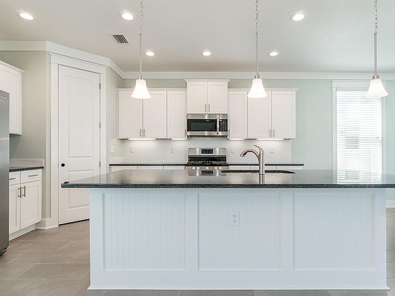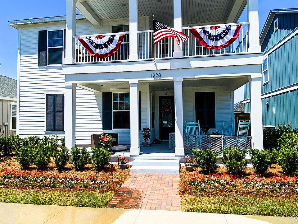 Two-story home with balcony overlooking Chickadee Park in popular SweetBay. This Anastasia model features 3 bedrooms, 2.5 baths, plus bonus loft. Owners installed 6 foot privacy fence, security system, and outdoor automatic security lights. The open kitchen, living and dining rooms connect to a large covered patio for easy outdoor entertaining. A huge kitchen island anchors the gourmet kitchen with walk-in pantry, granite countertops, stainless appliances including a refrigerator and gas range, and under-cabinet lighting showcasing a beautiful tile backsplash. The large upstairs bonus area / loft is perfect for additional living space or to accommodate the occasional guest.