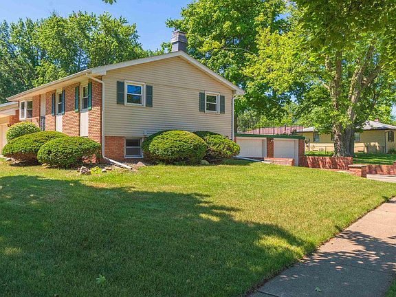 Bi-level style home sits on a corner lot with 4 bedrooms, 2-baths and 3-attached garages! Huge deck above 2-car, side-load garages - great for relaxation and entertainment. Nice landscaped yard with mature trees. Gutters & downspouts replaced. Hardwood flooring replaced in kitchen & foyer/entry. Some new carpet installed July 2020 on both levels. Sellers offering $1,000 allowance for Buyers to replace remaining flooring upstairs. Sellers never used fireplace (no known concerns. Sold "as is"). Great location, close to elementary school, park, tennis court, restaurants and businesses. All information believed to be accurate but not warranted.