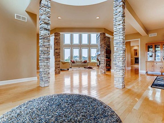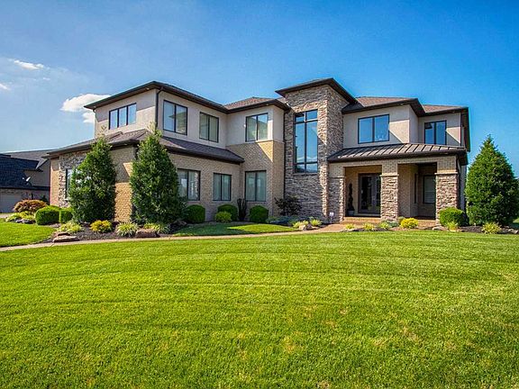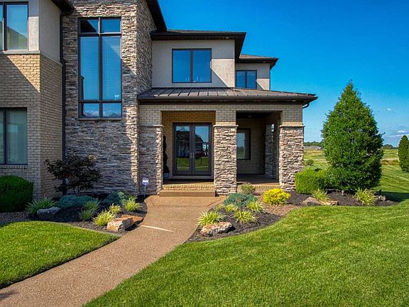 Unique architecture and exquisite design combine to create this stunning 4-bedroom, 5.5-bath masterpiece. The brick, stone, and stucco exterior and modern design, paired with immaculate landscaping with the backdrop of the gorgeous rolling hills of Cambridge Golf Course provide remarkable curb appeal. The double-door entry into the home welcomes you to floor to ceiling windows, hardwood floors, soaring ceilings, stacked stone columns, an open catwalk above the great room, and lighted display nooks throughout. Your meals will be crafted in the kitchen that can only be described as indescribable with pendant lighting, granite counters, beautiful floor-to-ceiling cabinetry, a large island, and custom back splash. The living room and hearth room off the kitchen allow for large gatherings, letting the panoramic views of the in-ground pool and surrounding golf course to guide the conversations. There is also a rec room and office on the main level, with a drop zone and laundry room just off the 3-car garage entrance. The master retreat offers a coffee bar in the sitting room, His-and-Her bathrooms, two walk-in closets, a laundry room, and private balcony overlooking the property. The upper level is complete with two additional bedrooms and baths, and a fourth possible bedroom currently used as an exercise room. The icing on the cake of this phenomenal home is the outdoor living space, which includes an in-ground pool, screened-porch, lake views, and the rolling green acres of Cambridge Golf Course.
