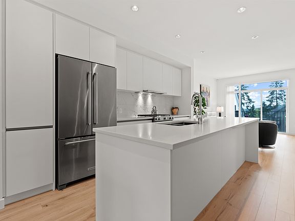 Welcome to Aalto, built by reputable Intracorp! This modern, Sandinavian-inspired townhome comes with 3 beds, 2.5 baths & a private outdoor patio. This functional home comes fully equipped w/ oak laminate flooring throughout, 9' ceilings, & a true chef's kitchen w/ high end kitchen-aid appliances, matte finish over-height contemporary cabinetry & an oversized island w/ bar seating. Generous size bedrooms & laundry w/ linen closet. Impeccably maintained. Tandem-style garage w/ plenty of storage room. Well-run strata. Still under warranty! Location is unmatched. Connected to the natural landscape & conveniences of the urban centre. Walking distance to all levels of schools, skytrain, groceries, shopping etc. Enjoy the amenity building for entertaining & fitness.