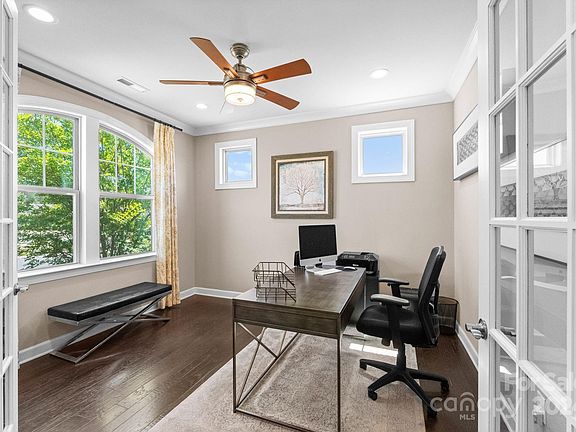 Nestled in a serene and picturesque setting, this newer-built 1.5 story home epitomizes modern elegance and comfort. Boasting a spacious layout, the residence features 3BR/3.5BA, thoughtfully designed to offer convenience and luxury. The primary bedroom and a guest bedroom grace the main level, providing privacy and convenience for residents and guests alike. As you step inside, you are greeted by an abundance of natural light and an open-concept living spaces. A sunroom invites relaxation and offers a tranquil retreat, while an adjacent office space provides the perfect setting for work or creativity. Transitional features adorn every corner of the home, seamlessly blending contemporary style with timeless charm. The Cadence community features a salt water, heated swimming pool, a clubhouse, walking trails, and a park. Conveniently located to Nivens Creek boat ramp w/ access to Lake Wylie, Catawba Park, golf, restaurants, tennis, and shopping! Landscape maintenance included in HOA.