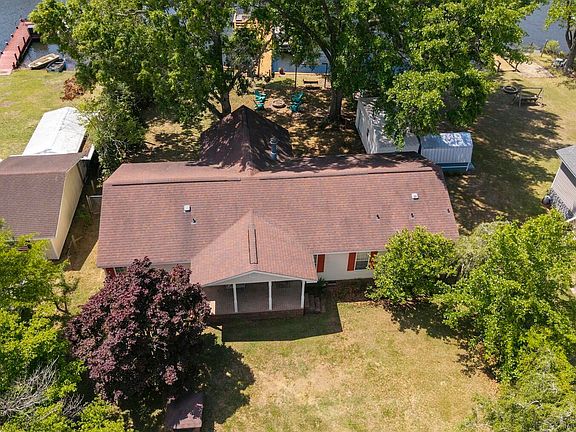 Looking for a Lake House? This well cared for home in a beautiful setting is ready for you! Featuring a split bedroom floor plan, living room with gas log fireplace, large eat-in kitchen with a lake view, enclosed lakeside porch, large storage building, fire pit, swing, seawall, pier, fishing cleaning station, irrigation and more! Two 18 hole golf courses, local restaurants and convenient stores are just minutes away!
