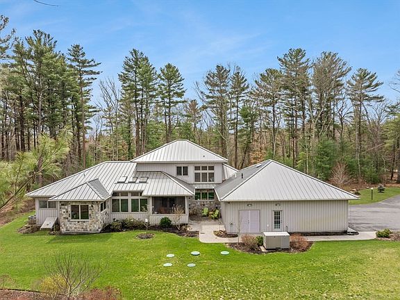 Step into one of Raynham's premiere homes! Custom-built in 2019 on a private lot, inside you'll find an expansive kitchen with high-end appliances incl. Wolf range w/ double oven, pantry, temp controlled wine cellar, plus dining area & living area as part of an open 1st floor, with elegant curved staircase front and center. First floor main bedroom suite includes his and hers walk-in closets, tons of natural light, attached bathroom with shower and soaking tub, and attached office. 1st floor also boasts another bedroom and a sun room (which could be made a formal dining room) and den. Second floor has two bedrooms sharing a Jack-and-Jill bathroom. Tons of storage closets throughout the house. Heated three-car garage with utility room and attached workshop. Entire home utilizes energy efficient radiant heat system. Metal roof, custom downspouts, beautiful stonework siding w/ board & batten accents, and enclosed patio are some outdoor highlights. Artesian well for lawn sprinkler system.