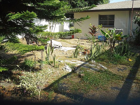 Screened lanai approx. 790 sq. ft. Perfect for Gardener, Naturalist, Work at home, DIYer, Musician All white interior - walls, ceiling, floor Open floor plan in kitchen/dining/living area Wired smoke and CO detectors Heavy duty vinyl window storm guards High Capacity HVAC with new duct work and returns in every room Refrigerator, range, washer, and dryer. 50 gallon water heater on pedestal 25' mast digital TV antenna Cable/antenna/internet connections in every room Code fire door between house and garage All new ceilings and insulation throughout 2013 Rockwool insulation/sound abatement between living room and bedroom 2013 Roof Replaced March 2013 75% new decking Hurrican Clips No leaks Custom height kitchen cabinets for taller people Designed to keep under the cabinet dry-specific for Florida block house design Entirely modular and removable for easy repairs and upkeep Large single compartment sink Very sturdy and lasting all real wood Formica counter made to be replaced has a built-in appearance If maintained properly, it will never rot Bathroom has original Aqua Bathtub New Toto Toilet Exhaust fan with light All concrete floors throughout Durable washable paint Property features: Full around backyard privacy fence New driveway apron Garden style border stones for property lines No chemical pesticides or fertilizers used
