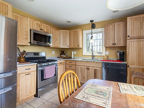 Remarkable 5 Bedroom 3.5 Bathroom New England Farmhouse remodeled in 2013 features a bright and spacious open floor plan, hardwood floors, a beautiful granite kitchen with stainless appliances, dining room, huge living room, sunroom and three bedrooms in the main home which lives like a single family and extends to an attached carriage house with massive sun drenched great room and full kitchen presenting a wonderful spot for entertaining or extension living space of the home, coupled with an additional 2 bedroom 1 bathroom accessory dwelling unit on the second floor featuring hardwood floors and newer kitchen with stainless appliances. Wait, there's more, as this wonderful home offers the versatility of a number of heat sources including a wood stove, radiant floor heat, and propane, a full unfinished basement for a potential workshop space, and an additional 2 car detached garage on +/- 3.5 acres. Welcome home!