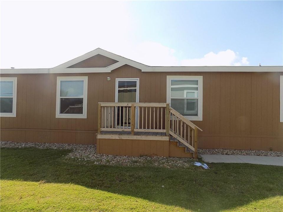Over 1800 sq ft four bed rooms three bathrooms, living room with cozy fireplace , inside laundry room tow patios, & storage building. Yard is maintained for you .Rental fee for home to set on lot.