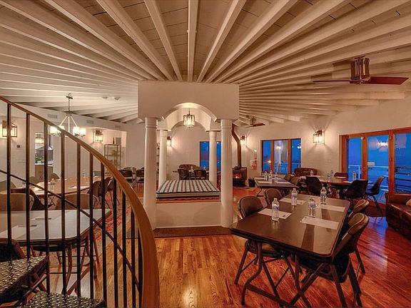 Experience laid-back luxury at Villa Santorini, a stunning oasis perched on a private 60-ft dune that feels as warm and welcoming as it is sophisticated. This remarkable 6,000 sq. ft. beachfront villa offers breathtaking 270-degree views of Lake Michigan, the unspoiled dunes, and the iconic Chicago skyline. Just 40 minutes from Chicago, it's the perfect escape to unwind and entertain right on the edge of the Indiana Dunes National Park. Villa Santorini is a spacious blend of unpretentious charm and unparalleled amenities, a comfortable haven for families, friends, or groups looking to unwind and make wonderful memories. The villa features 6 bedrooms, 4 bathrooms, and multiple communal spaces providing privacy and comfort for groups of all sizes. Enjoy direct beach access via private stairs leading to Lake Michigan's sugar-sand beaches, perfect for swimming, sunbathing, or a beach picnic. Step outside to over 4,000 sq. ft. of outdoor living space with panoramic views, a year-round gas grill, seating area around the outdoor fireplace, and a covered year-round hot tub on the East Portico. The historic Round Room, built in 1938, offers dining for 18, lounge seating around the Smart TV, and a cozy wood-burning stove. The gourmet kitchen is equipped with dual ovens, dishwashers, wine fridges, a dedicated under-counter ice maker, and an expansive island with bar seating for 6. Optional pairing with the adjacent property, The Addition, provides an additional 3 bedrooms and 3 bathrooms, offering even more space and convenience for larger groups without compromising intimacy or style. We can accommodate up to 26 guests, and additional guest fees apply over 14 guests. We are dog-friendly, allowing up to five dogs with additional fees. Early check-in and late checkout may be available for an additional charge. Located just 40 minutes from Chicago, Villa Santorini is perfectly situated for both adventure and relaxation. Enjoy the scenic outdoor luxury with panoramic views that bring the lake, dunes, and Chicago skyline into full view. The villa is right on the edge of the Indiana Dunes National Park, offering a unique blend of rustic beauty and modern comfort. A two-night minimum stay is required, with a three-night minimum for observed holidays. Licensee must be at least 30 years of age. No high school, college, after-prom party, or any other underage groups allowed. No bachelor or similar groups permitted. Excessive cleaning, if required, is billed at $35 per hour. Repairs due to damages are $45 per hour. If anything becomes ruined or missing, you will be charged accordingly. No illegal, dangerous, or non-family oriented activities or items are permitted. No commercial or retail entities or third-party service providers are allowed. No smoking inside or anywhere within 15 feet of any open door or window, with a $1,000 fine. Only four cars are allowed at any point in time. Overflow parking is 2 miles away. Neighborhood quiet hours are strictly enforced from 9 PM to 9 AM. Parties, events, lack of decorum, and disruptive noise will not be tolerated. Tampering with monitoring devices is strictly prohibited and will result in a $350 fine. Outside music is not permitted anytime. Includes a whole-house Nuvo Grande Concerto sound system with app control and Smart TVs with Roku and Xfinity streaming in almost every room. Cozy up in the media room with a wet bar, 75-inch Smart TV, large leather sectional, and wood-burning stove, perfect for unwinding with a movie or catching up with loved ones.