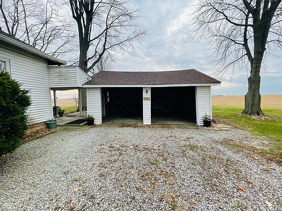 This charming two-bedroom, one bath farmhouse with 2 car garage is a fantastic opportunity for those looking to create their dream home in the serene countryside. Situated on a .73 lot surrounded by open fields, this property offers peaceful rural living within the sought-after Eastern Hancock school district. Home has an area upstairs that could be finished for additional living space. Home is being sold "AS IS".