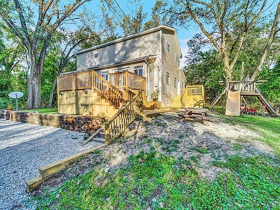 LOCATION!!! Located a few steps from Wells St BEACH and LAKE MICHIGAN! Want POTENTIAL??? Very SECLUDED location. Main floor offers 2bdrms, full bth w/ whirlpool tub, kitchen w/ french drs to deck, and large living rm that opens to vaulted ceiling sunroom. Walk-out lower level has recreation rm and 3rd bdrm. Windows and siding appear NEWER. Perfect set-up for a future attached garage off the front of the home, which would walk into the lower level. The home FACES A DUNE which tops off on Wells St for complete PRIVACY! Woods surround the home. Perfect for someone looking for an INVESTMENT or project for a future GETAWAY home. Directions to the property: County Line to Oak, West to Wells, North to Lake Shore Dr, turn left, and you will see a utility easement on the left-hand side, which leads back to the property.