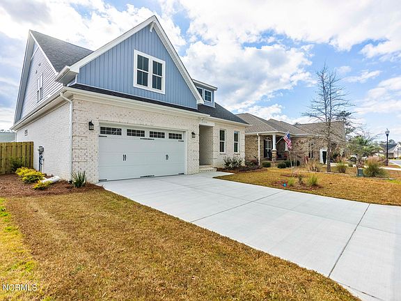 The year-round living is extended to the rear porch, enhanced by an Eze-Breeze enclosure overlooking the fenced rear yard. The first-floor owner's suite is a luxurious retreat, featuring a sizable walk-in tile shower, double vanities, a private water closet, and a generously sized walk-in closet with wood shelving. The first floor is further completed by a second bedroom with a full bath and a convenient laundry room. Privately situated upstairs, discover a large bonus room and flex space, along with the third bedroom and another full bathroom. Additional features include laminate floors throughout the first-floor living areas, wood stair treads, a sodded and irrigated yard. A short drive takes you to the inviting beaches of Oak Island and Holden Beach. Step into the allure of Palmetto Creek's amenities just beyond your doorstep - a clubhouse with a resort-style pool, fitness center, trails, tennis & Pickleball courts, putting green, and a kayak and canoe launch for exploring ponds and lakes. Seize the chance to own this new home in Palmetto Creek, conveniently located 30 minutes from Wilmington, NC, 30 minutes from North Myrtle Beach, SC, and 15 minutes from the beaches of Oak Island or Holden Beach. Don't miss out on this unique opportunity!