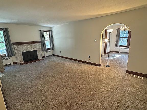 Wood burning fireplaceCircle driveNewly remodeled kitchenDining roomBasement laundry