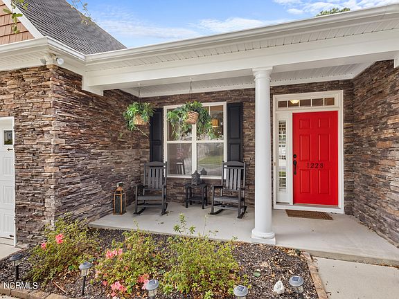 Discover the epitome of coastal living at 1228 S Brook Road. This stunning home welcomes you with an inviting open floor plan, accentuated by elegant tray ceilings and pristine floors throughout. Plantation shutters adorn every window, offering both privacy and timeless charm.