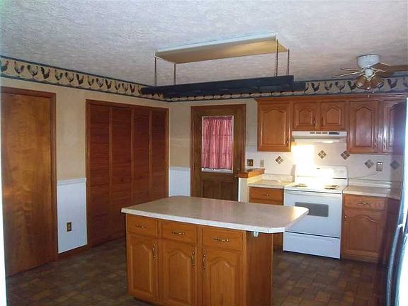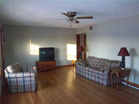 "Come See About Me" This home sits up on a hill & really nice setting with lots of trees behind home on a 1 acre lot. The ranch home has a large living Rm & kitchen & 2 nice sized bedrooms. This hard to find garage is large enough to have 4 vehicles & extra room for a work shop area. Newer roof, well pump, furn & A/C.