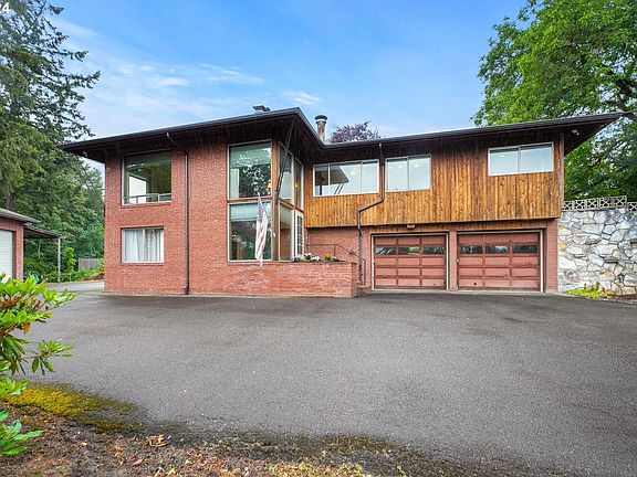 Gorgeous Southern exposure for this half acre mid century modern. Originally built by a brick mason in 1963, this property is so COOL!! Built of block with concrete & steel & 4" brick veneer, the property could be separated into 3 lots but in case you have a vision of keeping this and restoring it, you won't be disappointed. Total of 4+ garage spaces (2 tucked under house, 2 in large detached garage). Main level of house (wheelchair accessible on North side into laundry room) has 3 bedrooms, kitchen & formal areas with fireplace and picture windows. Lower level has family room with fireplace, storage spaces, mechanicals, full bathroom and access to the tuck under garage. New heat pump and adjacent to 13 acres of walking trails and wooded areas. You must see this amazing gem to appreciate the vision! [Home Energy Score = 4. HES Report at https://rpt.greenbuildingregistry.com/hes/OR10231577]
