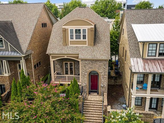 Tucked away in Atlantic Station, this handsome brick home features thoughtfully curated design elements throughout. Designed for entertaining, the open main level boasts a flowing floor plan, coffered ceilings, well maintained hardwood floors & an abundance of natural light. Well appointed kitchen includes stone countertops, breakfast bar/island, stainless steel appliances, plenty of cabinet space & view to the inviting living room with cozy fireplace. Dining area located off of the kitchen allows for an effortless flow between rooms. Large room below the main level creates the ideal home office space with high ceilings. Over sized primary bedroom showcases detailed millwork, sitting area, walk-in closet & stunning en-suite. Primary bath includes his & hers double vanity, spa like jacuzzi tub & luxurious shower. Bonus room on the lower level is perfect for a playroom, workout room or additional storage space. Outdoor relaxation is given a top priority with a private covered deck on each level. Highly sought after location- just minutes away from shopping, dining, entertainment & all that Atlantic Station has to offer!