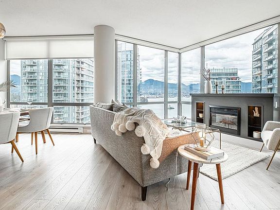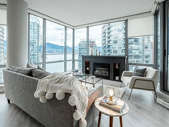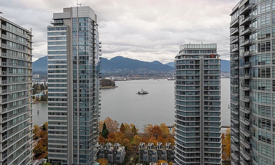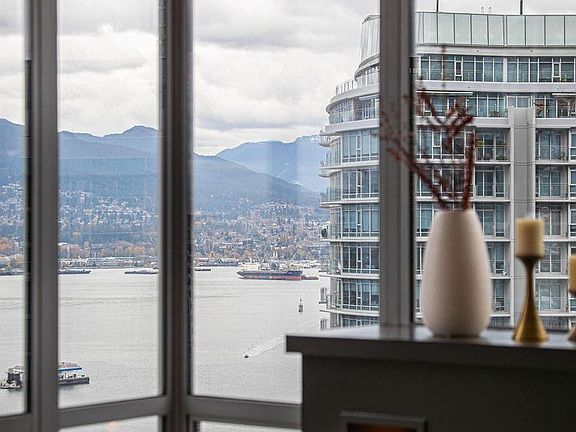 Spectacular views of Coal Harbour and the North Shore mountains from your large floor to ceiling windows in this renovated home with new flooring, bathrooms & kitchen. With only 3 units on the 21st floor, this home offers 2 Bedroom, 2 Baths and den with Great open floor plan. The kitchen features stainless steel appliances with a floating marble breakfast bar seating area. Enjoy working from home with a view with a bonus den in this bright suite. Relax and enjoy the amenities that this building offers such as an Exercise Centre and Outdoor Hot tub. The proximity is hard to beat to the Coal Harbour Seawall and all the amazing downtown restaurants that Vancouver is known for.