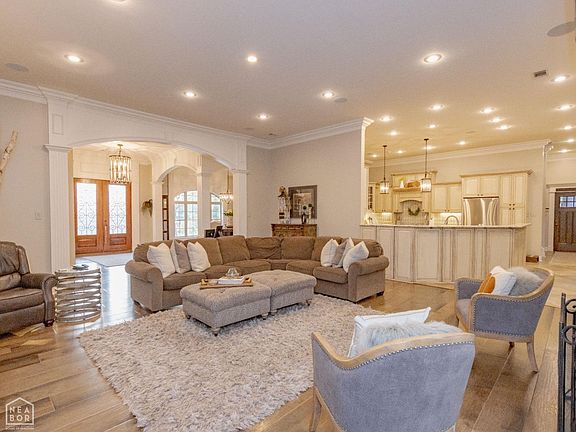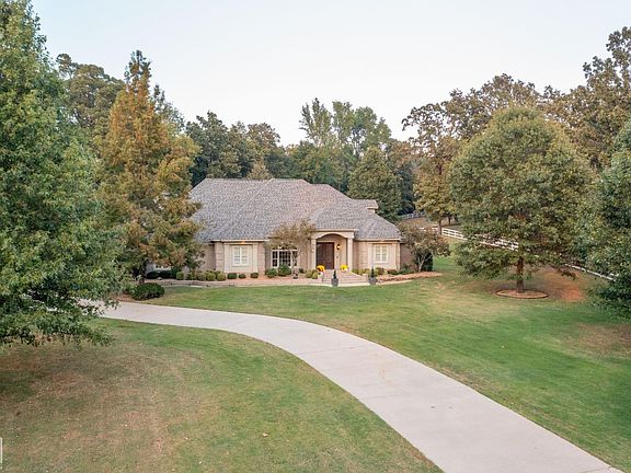 Nestled within the coveted Valley View school district of Northeast Arkansas, this captivating home sits tucked away on almost 2 acres of lush landscape. Impeccable landscaping sets the stage, with a serene water feature visible from the large windows along the rear of the house, creating a perfect backdrop. Privacy is paramount, thanks to the line of forest that shields the entire rear of the property. Step inside, and you'll discover a home designed for modern living. The spacious living room flows effortlessly into a second, equally expansive living area, beaming with natural light through its floor-to-ceiling windows. Both living rooms offer warmth and ambiance with their inviting fireplaces. The heart of this home is a gourmet kitchen that will impress any aspiring chef at home. With abundant counter and cabinet space, a center island featuring a second prep sink, and a double oven, it's a chef's dream. A walk-in pantry provides ample storage, while an open dining room adjacent to the kitchen offers the perfect space for hosting gatherings. From the back living room, step out onto a charming screened-in porch, perfect for sipping morning coffee or enjoying a fall evening while watching the game. The master suite offers a spacious retreat with direct access to an additional back patio. Its bathroom boasts two separate vanities, a luxurious soaker tub, a stunning walk-in shower with a glass enclosure, and a generous walk-in closet. Throughout the home, wide-plank hardwood floors exude timeless beauty, accentuated by elegant crown molding. The main level includes a private office, two guest bedrooms with a shared Jack and Jill bathroom, a safe room, and the opulent master suite. A half bathroom for guests adds convenience, and the large laundry room allows you to do all of life without having to climb up and down the stairs. Upstairs, two bedrooms with en suite bathrooms offer privacy and comfort for guests or family members seeking solitude. A spacious bonus room provides an excellent space for a movie or game room, and a large closet with built-in storage is perfect for holiday decorations and seasonal items. Notably, this home features a roof installed less than a year ago, ensuring long-term durability and peace of mind. The 3 car garage makes for a perfect place to keep all of your outdoor equipment safe from the coming winter weather, and the entire lot is equipped with a sprinkler system to ensure a beautiful lawn in those hot summer months. With its immaculate landscaping, thoughtfully designed interiors, and a plethora of luxury amenities, this Valley View gem offers a lifestyle defined by elegance and comfort. Welcome to your new home!