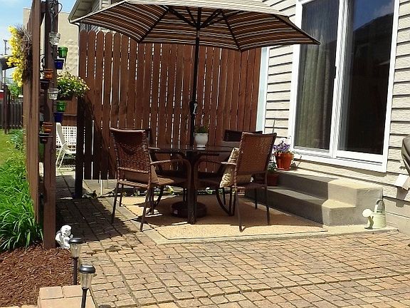 This impeccable unit has many recent improvements, including custom ceramic tile and newer counters and cabinets in kitchen, wide plank laminate wood floors throughout first floor, crown molding in entire first floor plus in master bedroom, newer carpet and appliances, gorgeous bathroom vanity in half bath & ceramic tile in full bath. Additionally, there is a darling brick paver patio with privacy screen and a one car garage. This condo will truly WOW you from the moment you step foot inside. Kitchen appliances are included. Half of the lower level is finished for additional living space, plus a space for laundry and tons of extra storage.