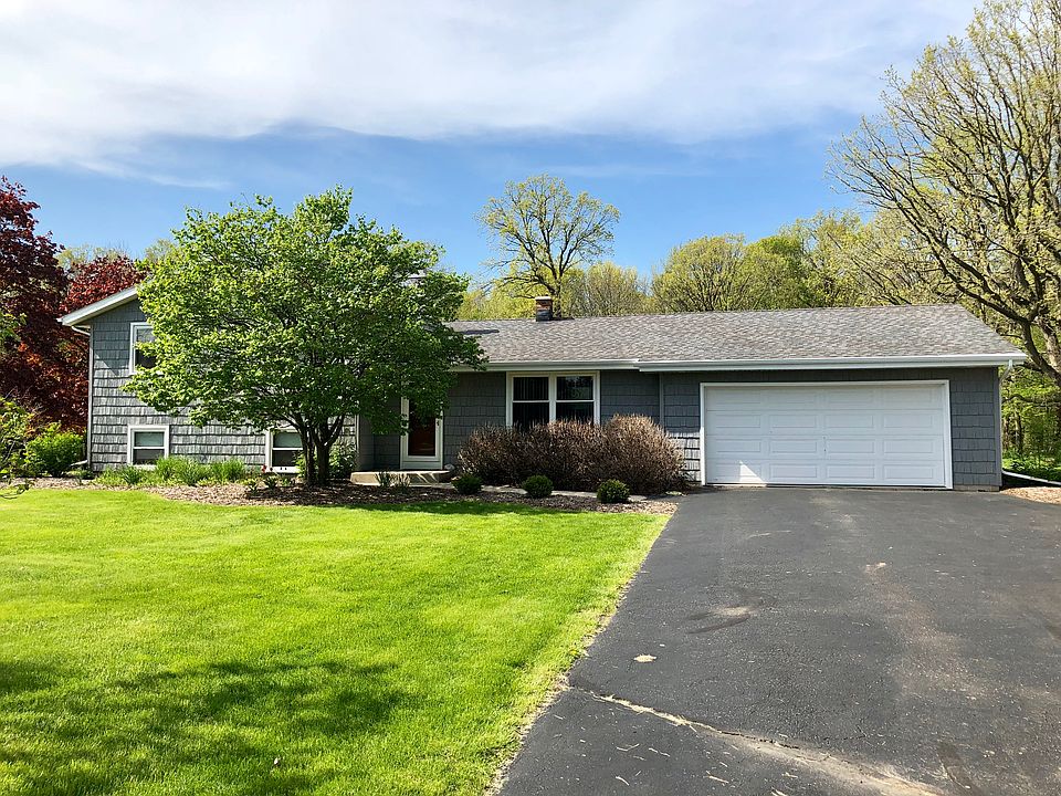 Country living tucked into a wooded corner of the village of Howards Grove! Beautiful Tri-level home with siding and windows redone within 10 years. Very large, open, kitchen and dining room on main level opens out through patio door onto a small deck leading to a huge, lovely backyard area. Living room on main level as well as a large family room on the lower level with fireplace. Large laundry room/office area in lower level could be used as a 4th bedroom as there is access to the outside through a backdoor. Bathroom on lower level. 3 Bedrooms on upper level as well as a full bathroom. Basement and attic for lots of storage. 2 car garage. Concrete patio out back looking out on a spacious open backyard that borders wooded area with the Pigeon River a couple hundred yards into the woods. No neighbors behind house so truly great private spot! Large garden with mature apple trees and various berry bushes...water spigot was added to the garden area for ease in watering. Nicely landscaped yard with mature red maples on the west side of the property, large blue spruce trees in the front yard, and many different lilac trees scattered throughout. Tall fence separates the yard from the neighbors yard to the east. Great place to raise children with the large open backyard, garden, woods and river in the woods to play in. You must see this property to truly appreciate it!