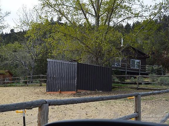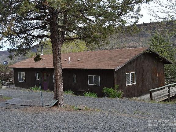 Picturesque Crooked River Canyon walls can be viewed from anywhere on this 3.62 acre lot & the backdrop for this home is beautiful rock outcropping. Wrap-around decks look over the fenced pasture, 2-storage buildings for hay, tack or yard equipment. House updates incl large vinyl windows, tile bathroom accents, newer appliances. A wood stove will keep you cozy in the winter months & the heat pump will cool you off in the summer. Home has framed exterior walls and trusses surrounding mfg. home.