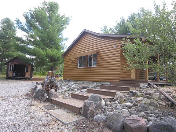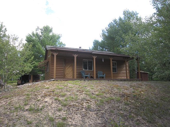 This cute 2 bedroom log cabin sits on 200 acres of good hunting property and a great area for 4 wheeling and snowmobiling. Cabin comes completely furnished and has a 5500 Yamaha diesel generator and also has solar panels. Cabin is located 7/10 of a mile off a year round road. Indoor bathroom plus an outhouse..