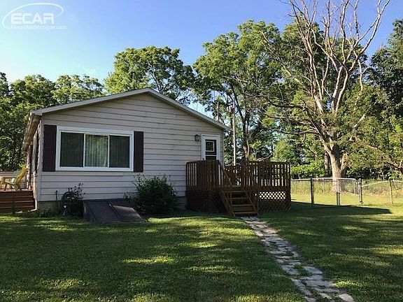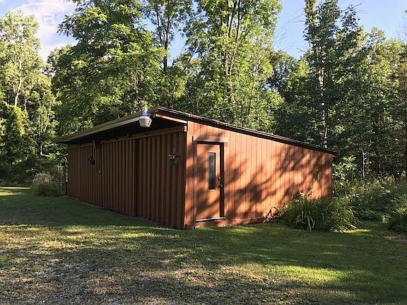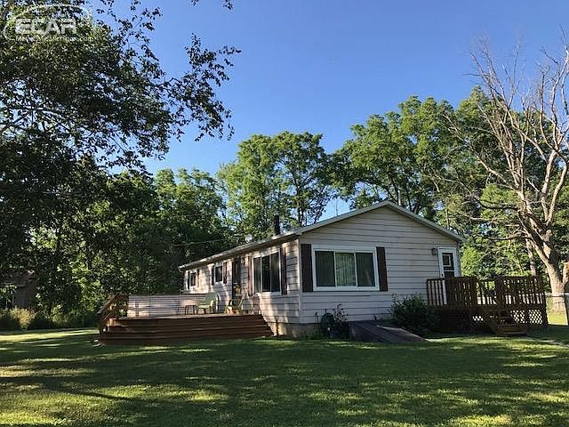 Welcome to the country! Home is nestled off the road and surrounded by trees. Pole barn, fenced in yard, full basement has extra tall walls with lots of possibilities. 3 bedrooms and 1 bath. Dining room offers slider door to back wrap around deck. Trails cut in woods so that you can enjoy the wildlife & nature. Large yard, appliances included. Home Warranty is offer by seller.