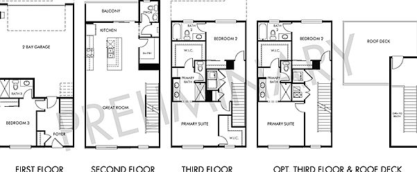 This unit includes a stunning rooftop deck with views of the foothils. This floorplan has painted gray cabinets, quartz countertops, and EVP flooring in our Fresh 2 package.