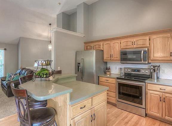 This home is the ONE! Bright & airy split with vaulted ceilings throughout coveted open floor plan. Hardwoods in the kitchen with stainless steel appliances. New Neutral paint, see through fireplace and built in entertainment center give the space a modern feel. Updated baths. Lower living space with fireplace, laundry & half bath. Walk out to enjoy the cozy patio with pergola and custom landscaped & fenced yard. 6' garage extension & shed in back for storage. New A/C, hot water heater, interior & exterior paint.