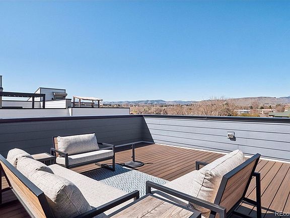 Sweeping mountain views fill this premium end-unit residence, including from the private rooftop deck—your perfect perch for morning coffee or sunset gatherings. Lightly lived in and meticulously maintained, this corner home enjoys abundant natural light, extra windows, and just one shared wall for enhanced privacy and peace. Located in one of Arvada’s most convenient and connected neighborhoods, you're just *steps* from Van Bibber Open Space & Trails and Little Raven Park and playground. It’s only a 10-minute drive to the shops and restaurants of Olde Town Arvada, 13 minutes to Golden, 8 minutes to the new LifeTime Fitness, 25 minutes to downtown Denver, and 40 minutes to DIA. Nearby access to I-70, Stenger Sports Complex, and the light rail makes getting anywhere a breeze. Inside, stylish finishes meet thoughtful upgrades. The chef’s kitchen features sleek gray cabinetry, quartz countertops, stainless steel appliances, a gas stove, and a bright, open layout that flows into the sun-drenched living space. A covered deck off the kitchen provides a second private outdoor escape. Custom built-ins throughout the home—including enhanced bedroom closets and a modern mudroom—add organization and charm. Hunter Douglas blinds offer style and shade on every window. Energy-efficient features like a tankless water heater, high-performance windows, a smart thermostat, and upgraded insulation promote a quieter, healthier, and more cost-effective lifestyle.