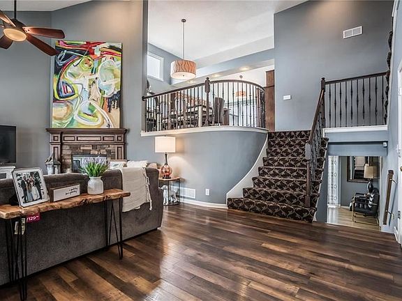 *HOME Sweet Mahomes* Snag this one before the super bowl is over! Contemporary California Split w/soaring ceilings & gas fireplace, wide-plank wood flooring, high-end iron spindles, new interior paint, newer light fixtures, granite countertops & mosaic backsplash, stainless appls, HUGE Master BR suite on its own level, cozy master bath & corner tub w/ walk-in closet, NEW subway tile & shower in 2nd full bath, finished daylight walkout basement for tv/rec room/game room, HUGE fenced yard, HUGE laundry, Hurry over!