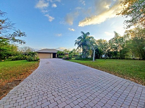 BRAND NEW ROOF!!! This gorgeous 3 / 2 CBS block home features a fully fenced and lovingly maintained 1.25 acre yard lined with mature oak trees and contains many unique tropical flowers, gardens, fruit trees, and pond. The oversized paver driveway provides ample space for parking in addition to the two-car garage.The split bedroom floor plan features a large open-concept living room with vaulted ceilings that flows into the kitchen, bar, and dining room. It is fully tiled throughout with 20'' tiles in the main living room and bedrooms. The remodeled bathrooms are fully tiled with granite countertops and the air conditioning system is just over a year old. Enjoy this beautiful home in one of the most peaceful neighborhoods in Palm Beach Co