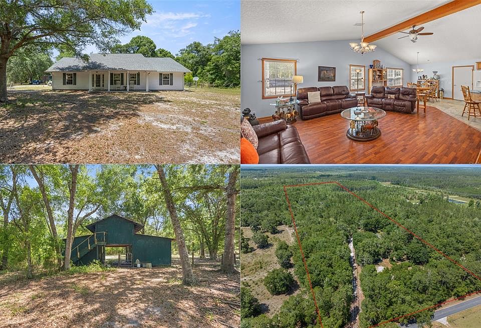 Nestled on 20 sprawling acres of serene countryside, this secluded home offers unparalleled privacy and tranquility. The property features a pass-through barn equipped with two spacious stalls, ample hay storage, and a generous loft for additional storage needs. As you step into the main house, you're greeted by a cozy ambiance that instantly feels like home. The kitchen boasts abundant cabinet and counter space, perfect for culinary enthusiasts and entertaining guests. Its seamless integration with the inviting living room its ideal for gatherings and relaxation. For those seeking a connection with nature, the screened-in lanai provides a picturesque vantage point, offering breathtaking views of the expansive landscape. Whether you're enjoying your morning coffee or unwinding after a long day, this oasis offers the perfect retreat from the hustle and bustle of everyday life. Roof replaced in 2023, Septic pumped in 2024.
